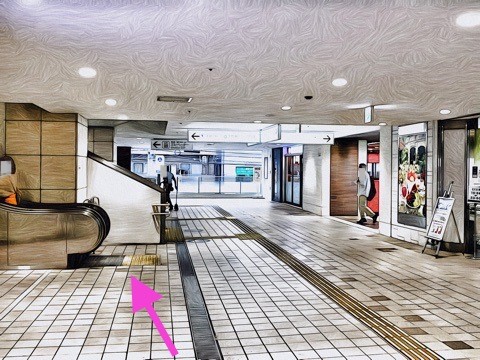 エスカレーターを降り前方の改札へ