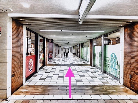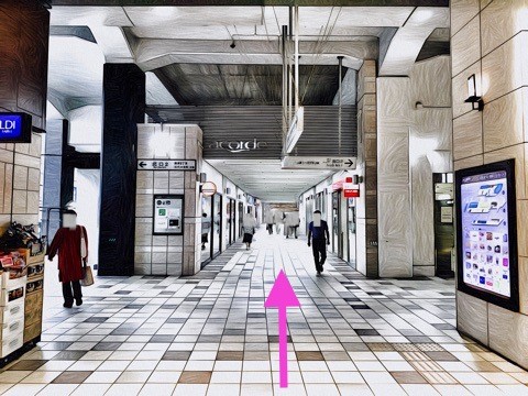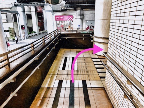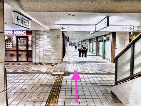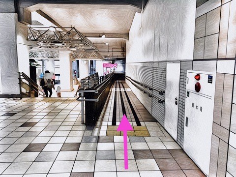 7号車2番扉(先頭から7両目)付近のエレベーターで改札階へ
