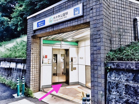 出入口4のエレベーターへ