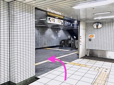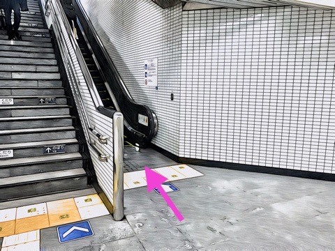 10号車4番扉(先頭から10両目)付近のエスカレーターへ