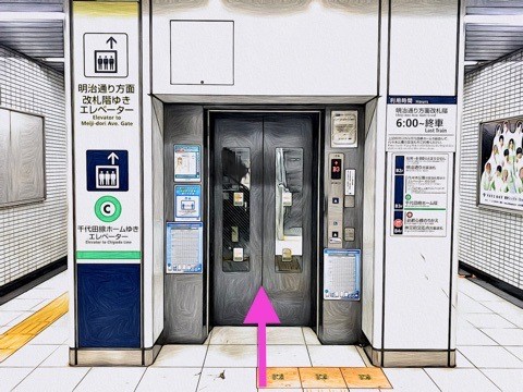 出入口エレベーターbのエレベーターへ