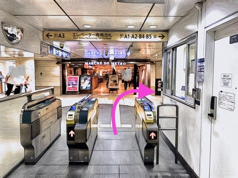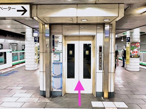 5号車1番扉(先頭から6両目)付近のエレベーターで改札階(B1F)へ