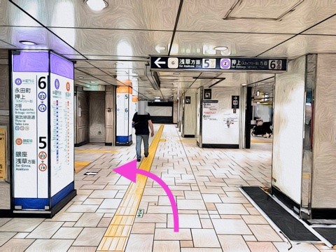 5番線が浅草方面行きホーム(5号車3番扉/先頭から2両目)