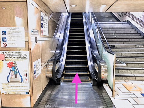 7号車4番扉(先頭から4両目)付近のエスカレーターへ
