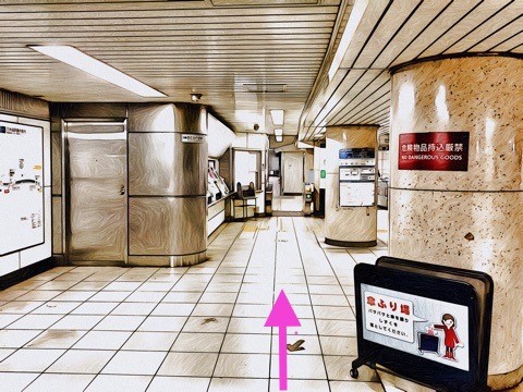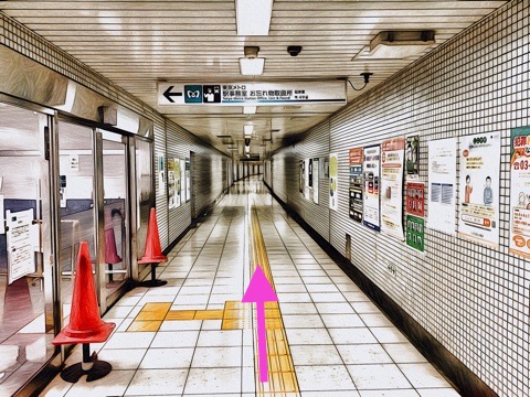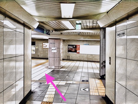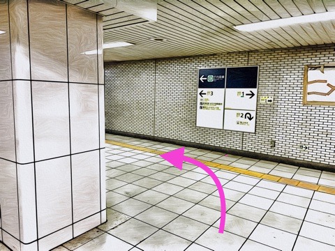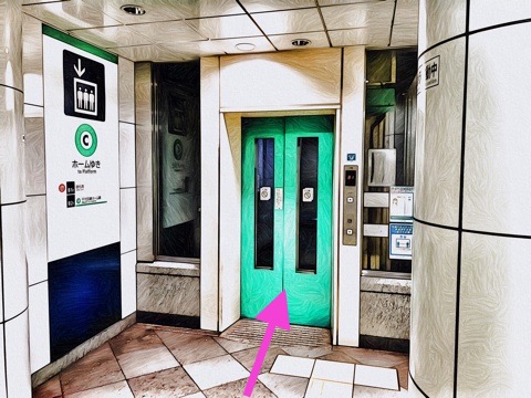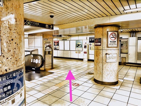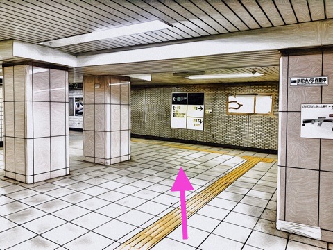 1番線が代々木上原方面行きホーム(8号車1番扉/先頭から8両目)