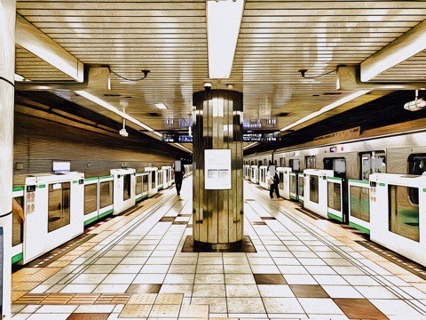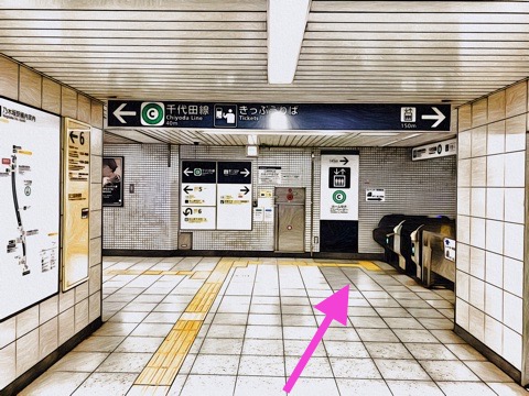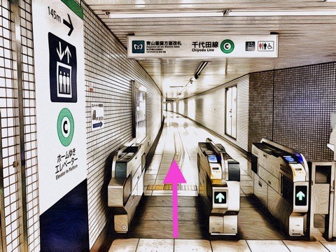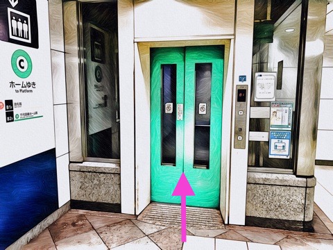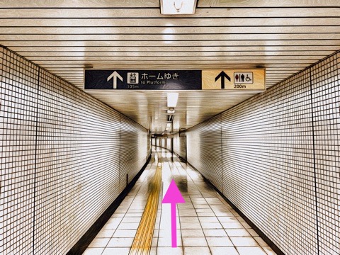 1番線が代々木上原方面行きホーム(8号車1番扉/先頭から8両目)