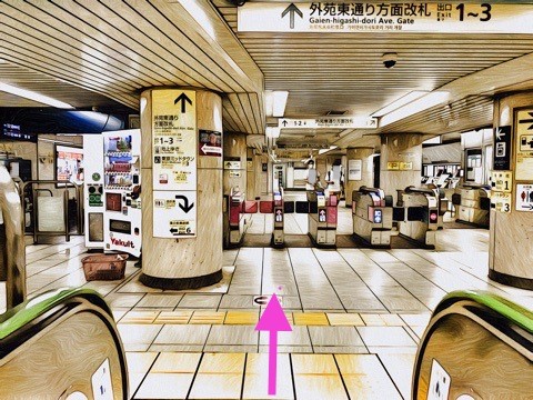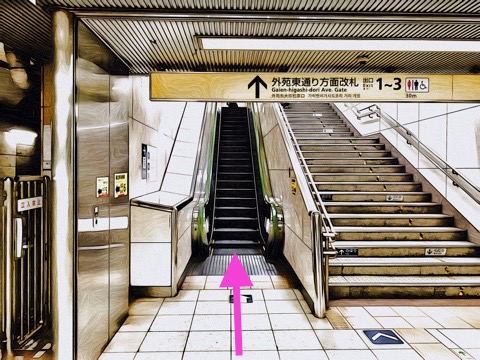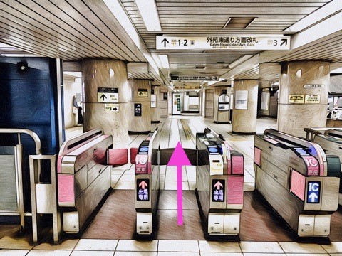エスカレーターを降り前方の改札へ