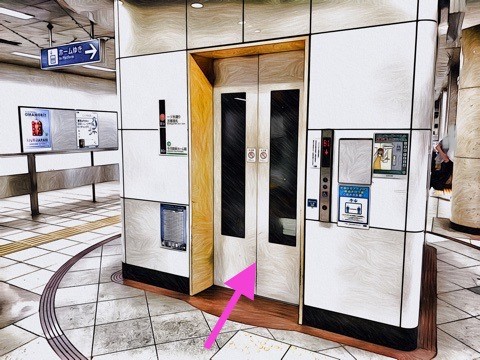 改札を入り前方のエレベーターへ