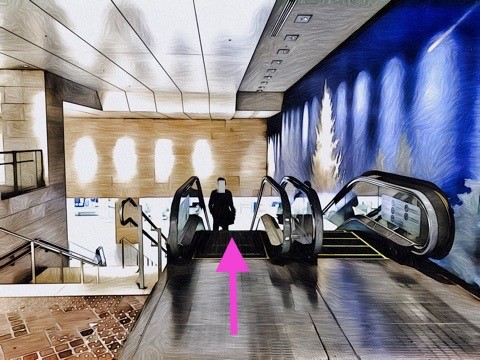 出入口3aのエスカレーターへ