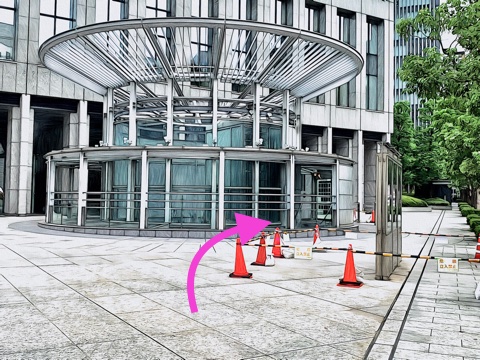 左前方の自動ドアへ