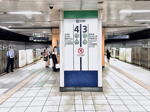 3番線が代々木上原方面行きホーム(1号車1番扉/先頭から1両目)