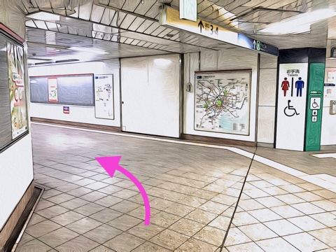 前方の改札へ