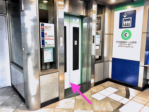改札を入り左にあるエレベーターへ