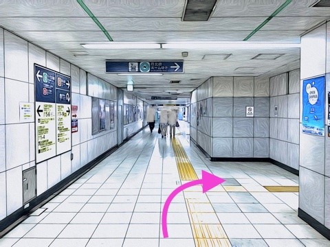 1号車1番扉(先頭から10両目)付近から階段昇降機へ