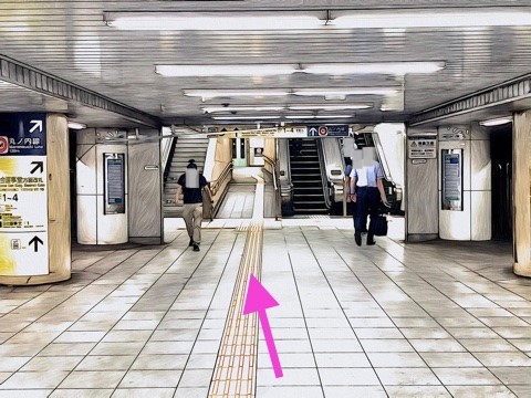 10号車4番扉(先頭から10両目)付近からエレベーターへ