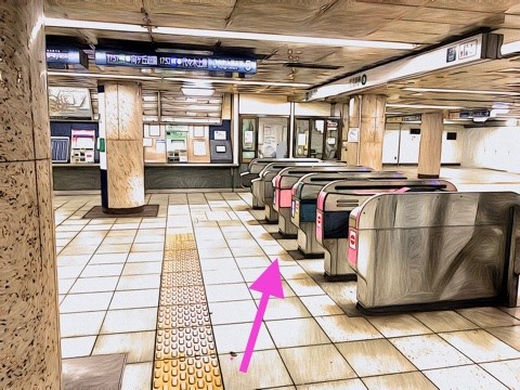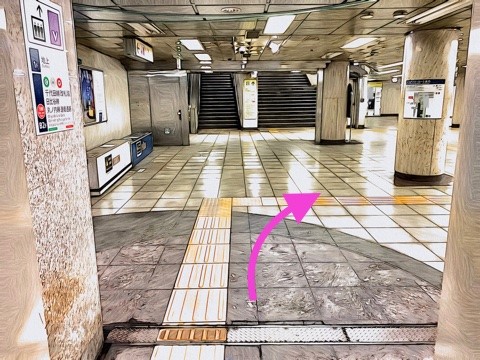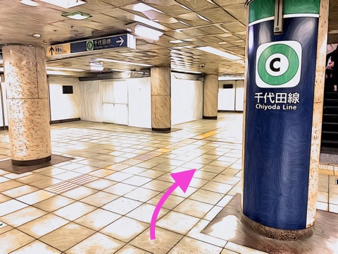 6番線が綾瀬方面行きホーム(1号車3番扉/先頭から10両目)