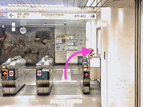 7号車1番扉(先頭から7両目)付近のエレベーターで改札階へ