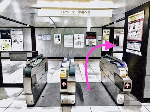 10号車1番扉(先頭から1両目)付近のエレベーターへ