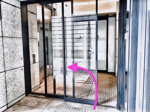 エレベーターを降り左へ