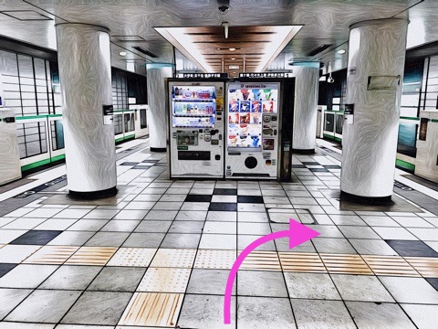 右が代々木上原方面行きホーム(10号車1番扉/先頭から10両目)