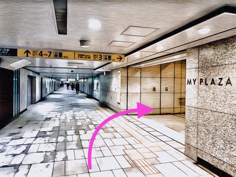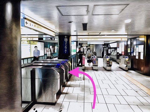 1号車1番扉(先頭から10両目)付近からエスカレーターへ