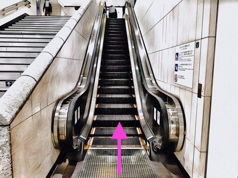エスカレーターで改札階へ
