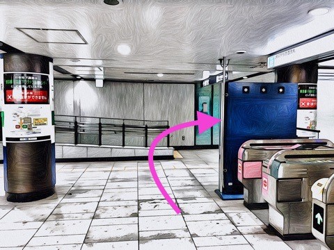 エスカレーターを降り前方の改札へ