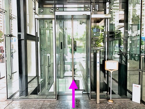 エレベーターを降り左へ