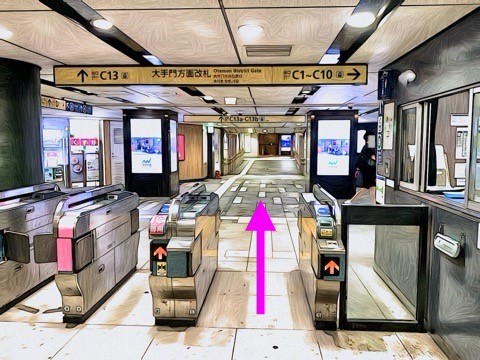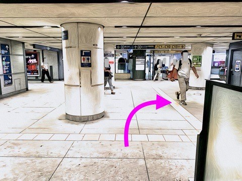 エスカレーターを降り右にある改札へ