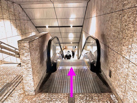 エスカレーターを降り左前方のエスカレーターへ