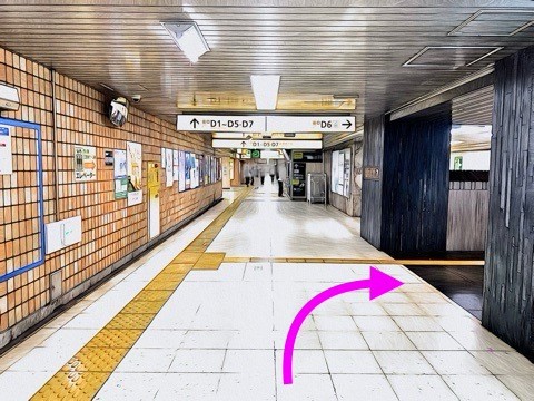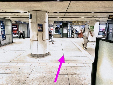 1号車1番扉(先頭から10両目)付近のエスカレーターへ