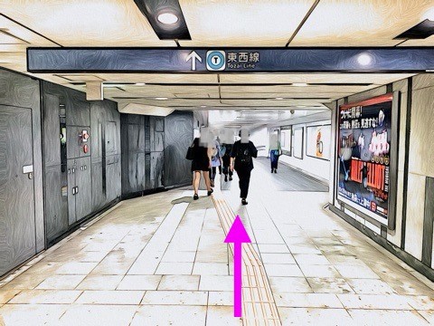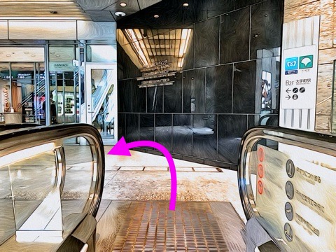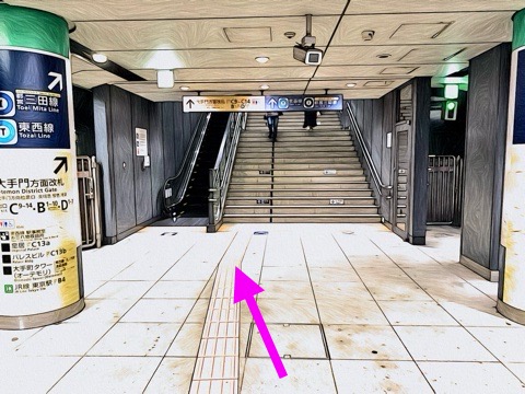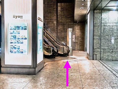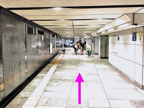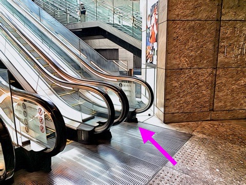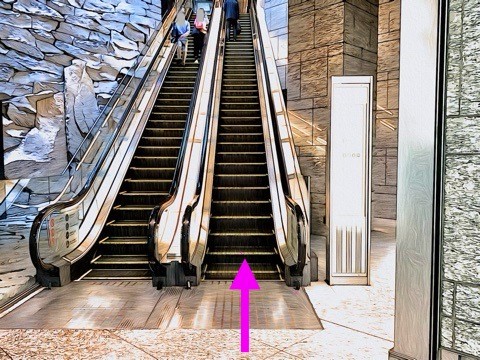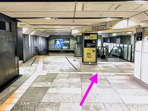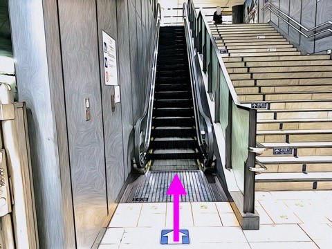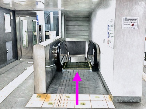 1号車1番扉(先頭から1両目)付近のエスカレーターへ