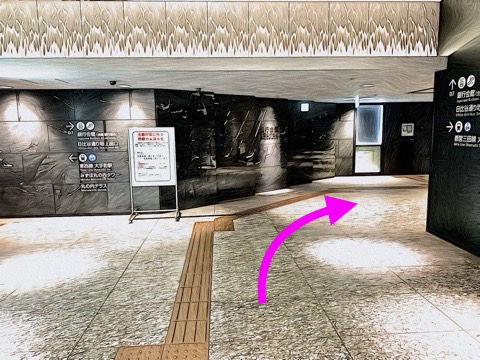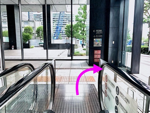 1号車1番扉(先頭から10両目)付近のエスカレーターへ