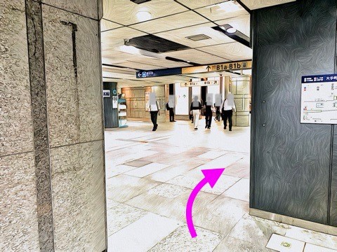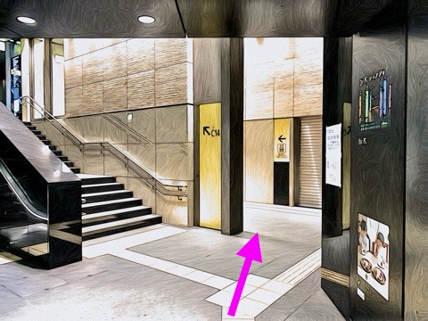 5号車4番扉(先頭から6両目)付近のエレベーターで改札階へ