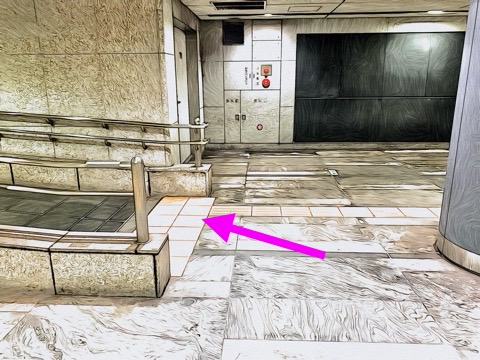 5号車4番扉(先頭から6両目)付近のエレベーターで改札階へ