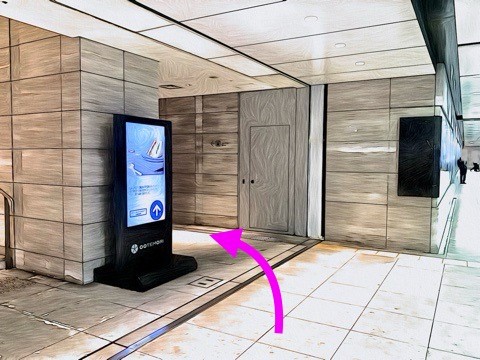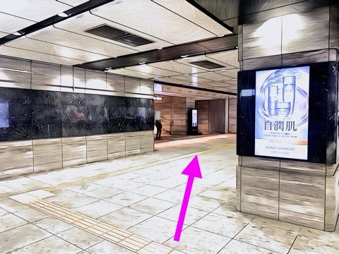 5号車4番扉(先頭から6両目)付近のエレベーターで改札階へ
