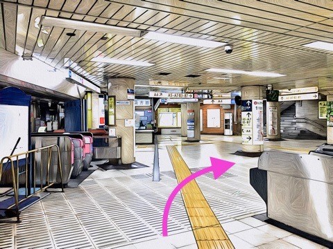 改札を入り前方へ