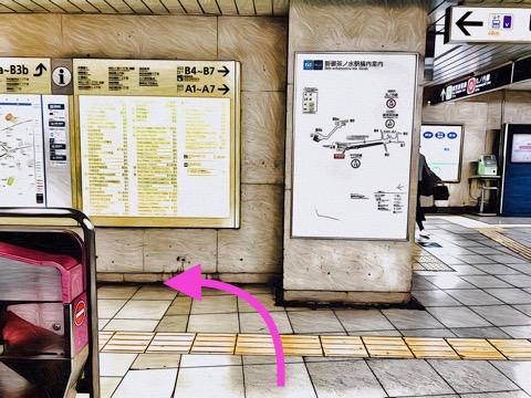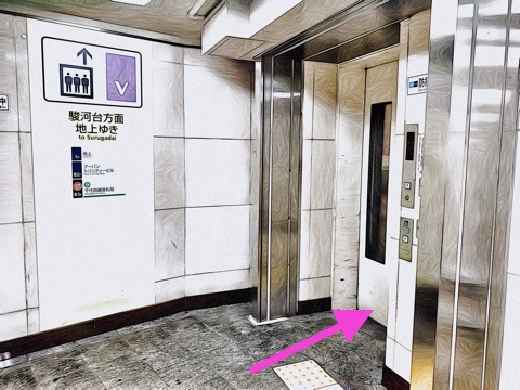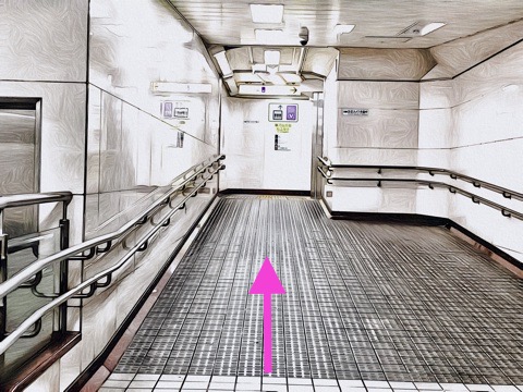 1号車1番扉(先頭から1両目)付近から階段昇降機へ