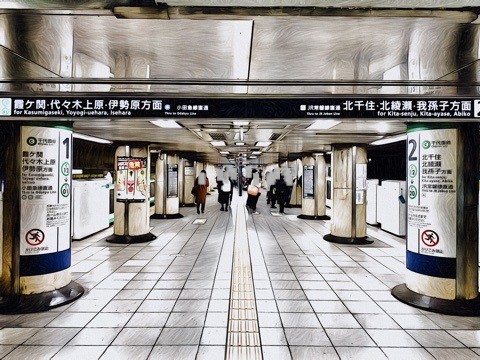 2番線が綾瀬方面行きホーム(10号車4番扉/先頭から1両目)