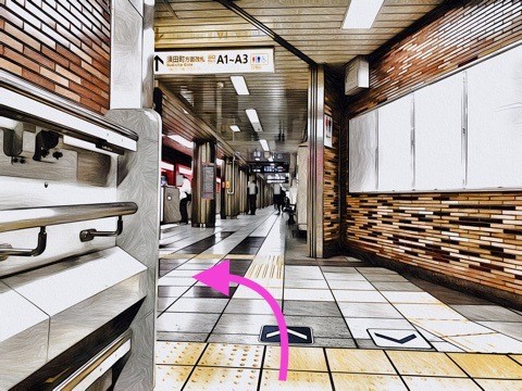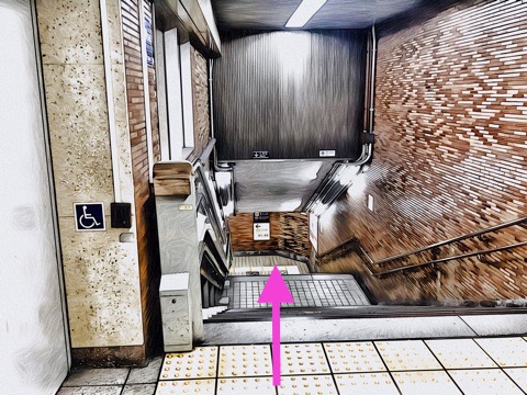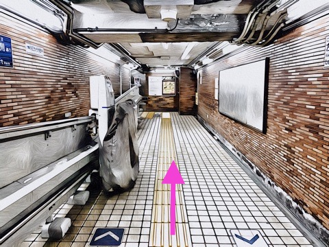 1号車1番扉(先頭から1両目)付近から階段昇降機へ