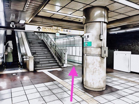 10号車4番扉(先頭から1両目)付近からエレベーター通路へ