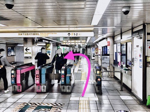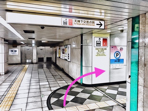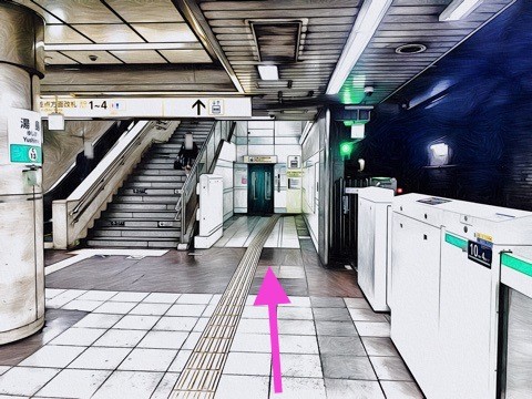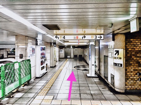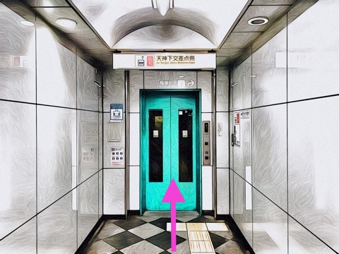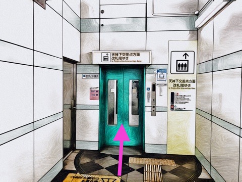 10号車4番扉(先頭から10両目)付近からエレベーターへ