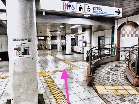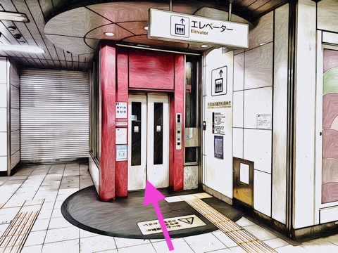 1号車4番扉(先頭から10両目)付近のエレベーターで改札階へ
