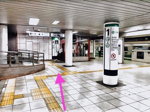 綾瀬方面行きホーム(1号車4番扉/先頭から10両目)