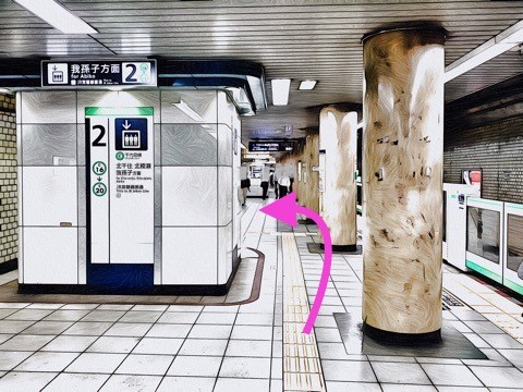 綾瀬方面行きホーム(8号車4番扉/先頭から3両目)