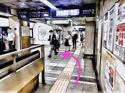 綾瀬方面行きホーム(10号車4番扉/先頭から10両目)