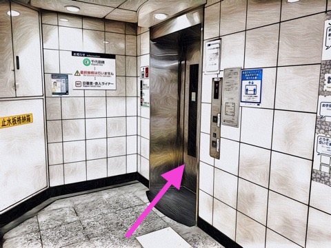 前方のエレベーターで地上へ