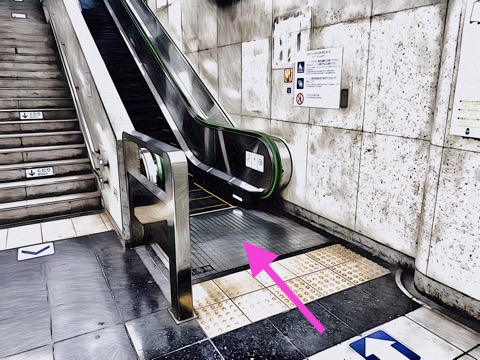 10号車1番扉(先頭から1両目)付近のエスカレーターへ