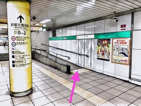 10号車4番扉(先頭から1両目)付近からスロープへ