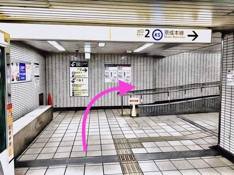 エスカレーターを降り前方の改札へ